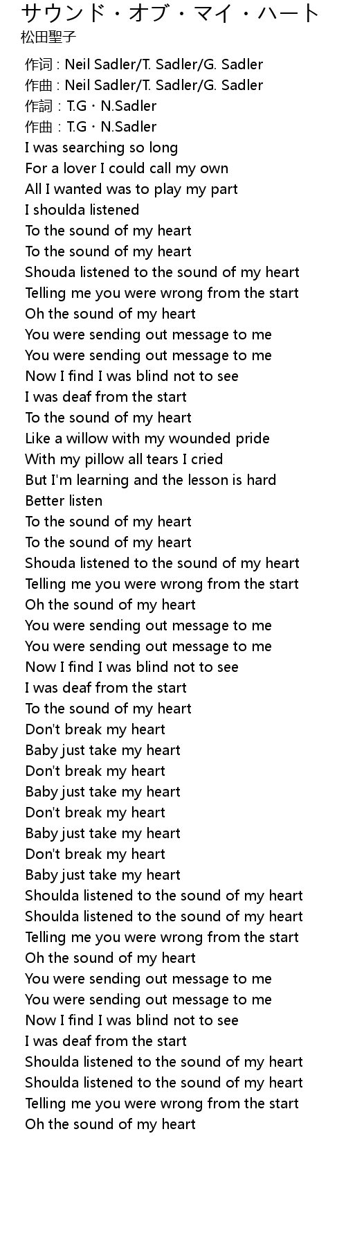 | [00:41.304] | Oh the sound of my heart |