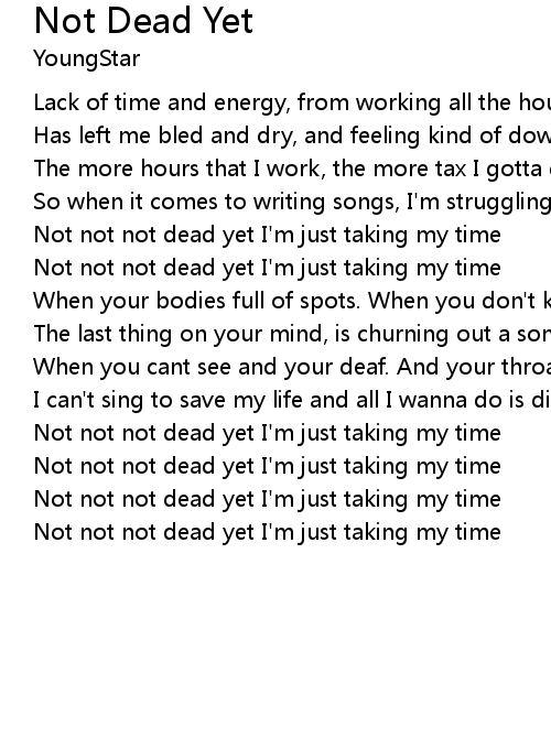 Not not not dead yet I'm just taking my time |