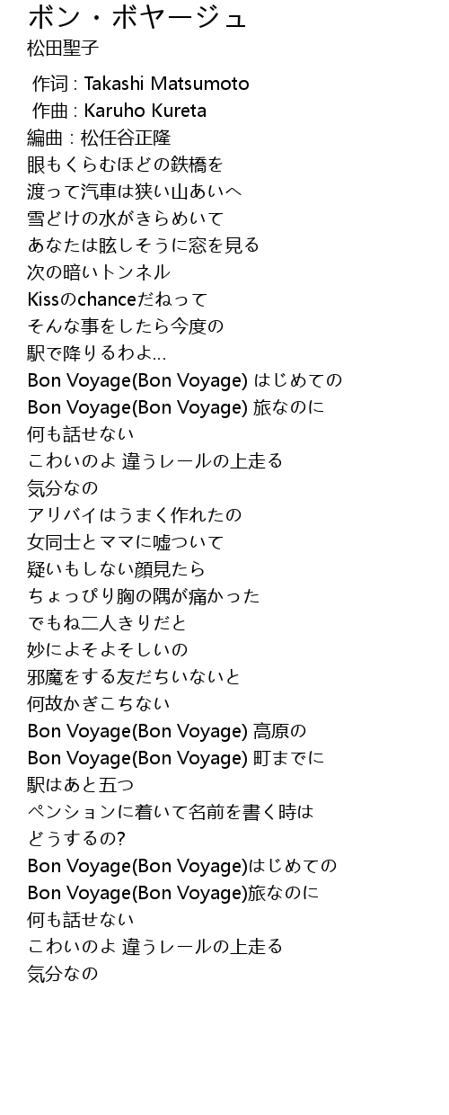 | [01:25:60] | Bon Voyage(Bon Voyage) 旅なのに |