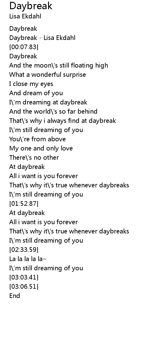 [00:04.95] Daybreak - Lisa Ekdahl