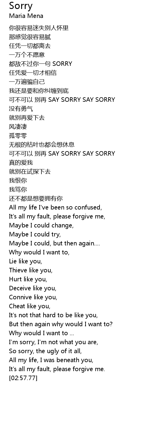 | [00:56.16] | 可不可以 别再 SAY SORRY SAY SORRY |