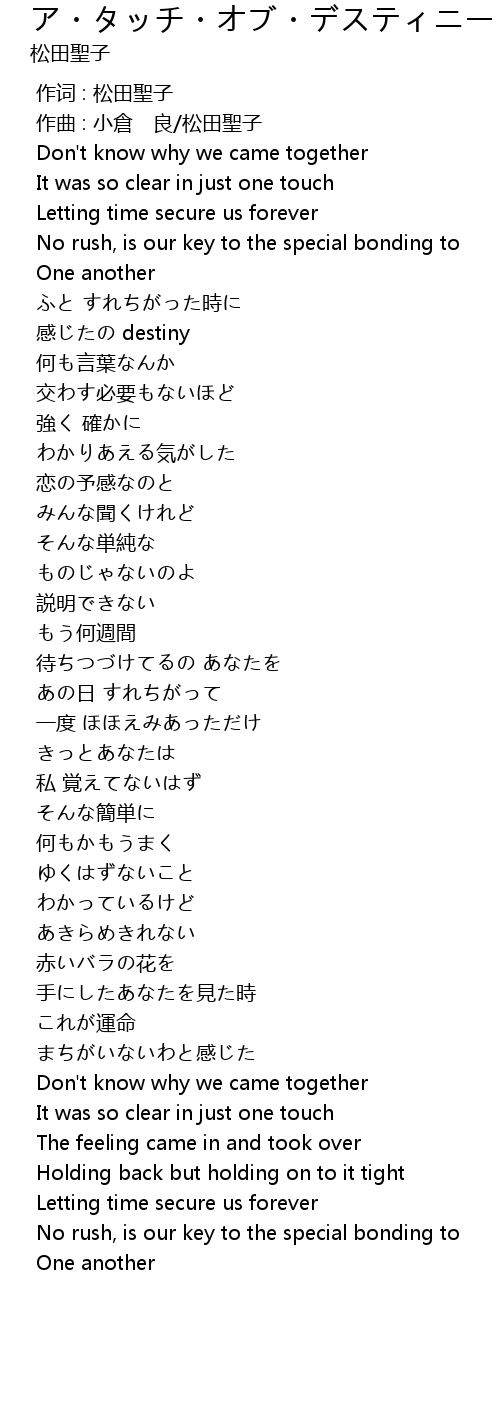 | [00:01.000] | 作曲 : 小倉 良/松田聖子 |