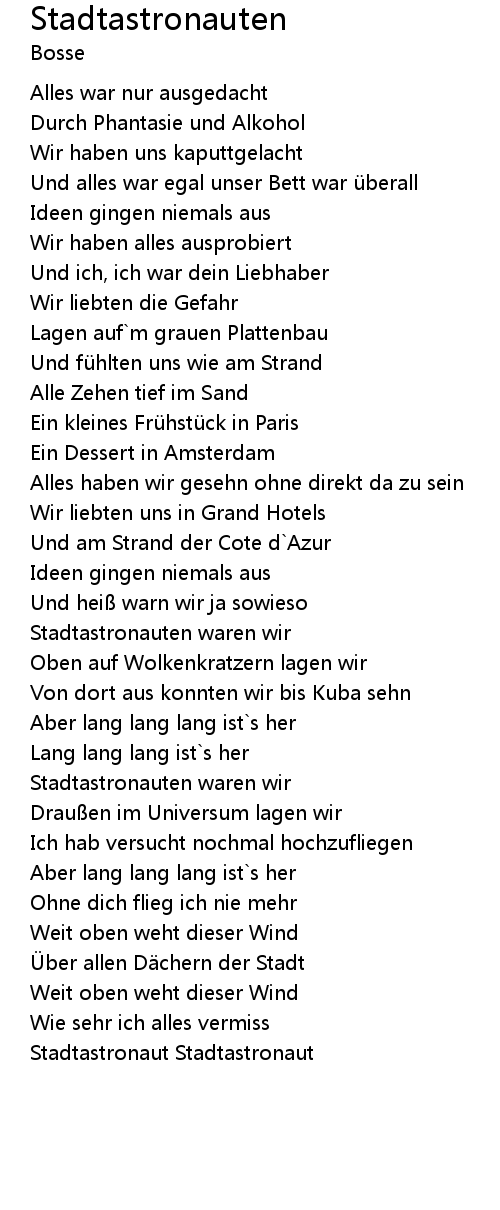 | Song | Stadtastronauten |
