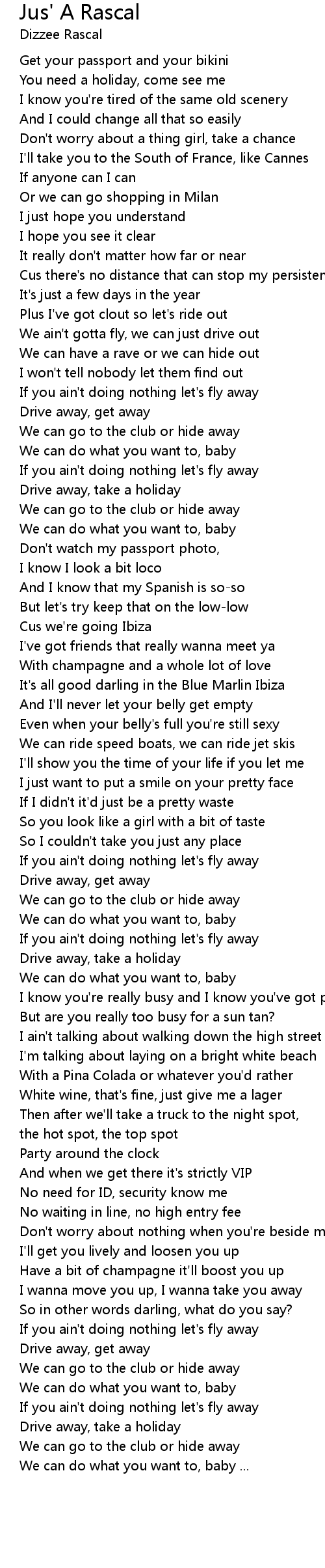 Jus' A Rascal Lyrics