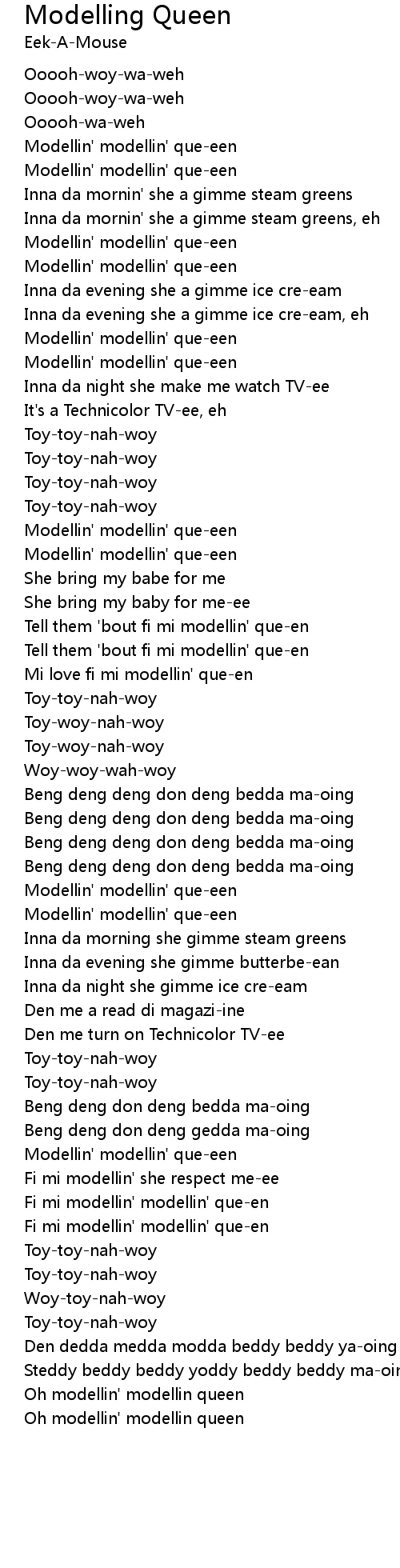 Modelling Queen Lyrics