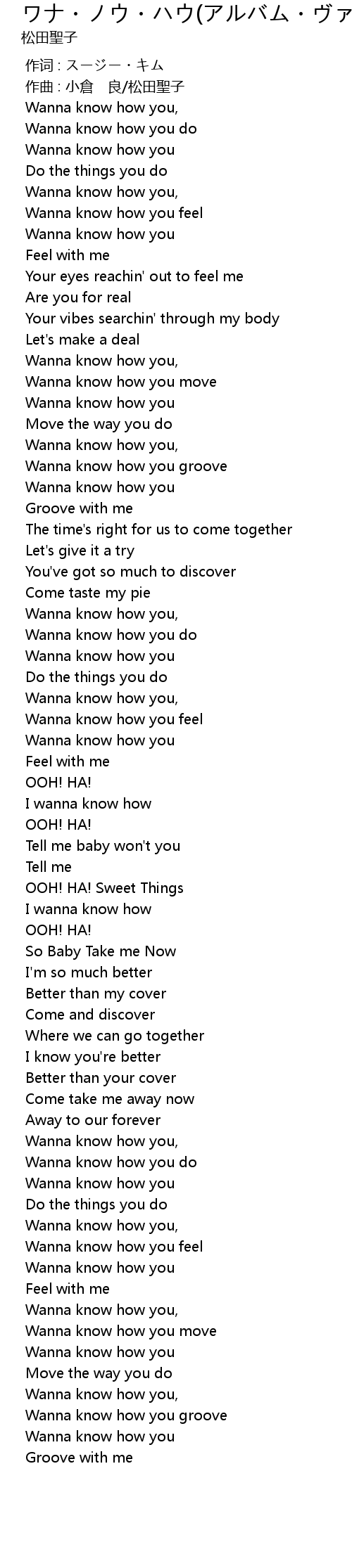 | Song | ワナ・ノウ・ハウ(アルバム・ヴァージョン) |