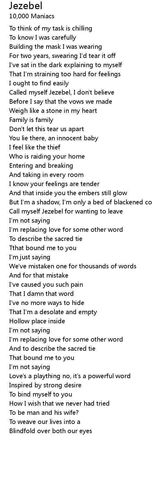Called myself Jezebel, I don't believe |
