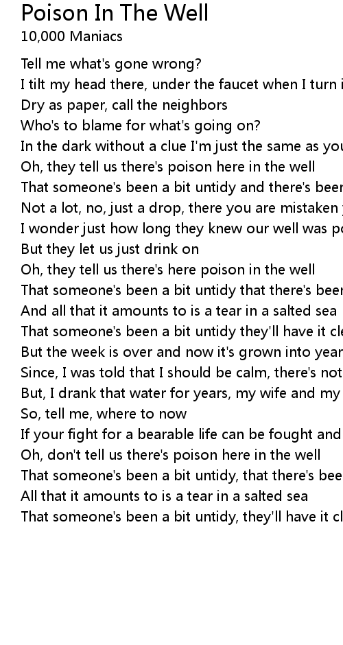 Oh, don't tell us there's poison here in the well |