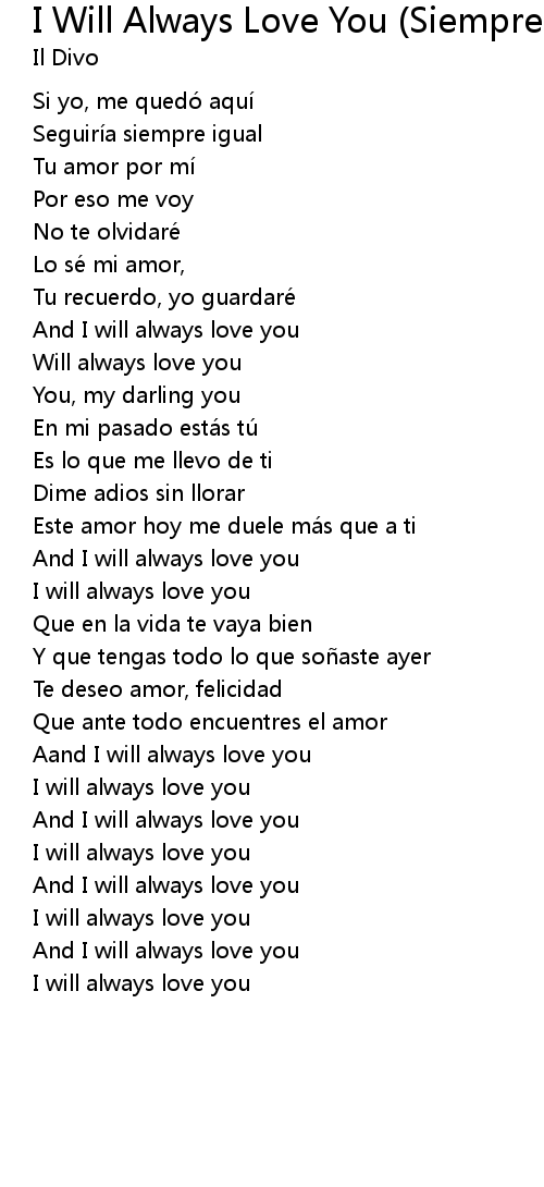 | Song | I Will Always Love You (Siempre Te Amare) |