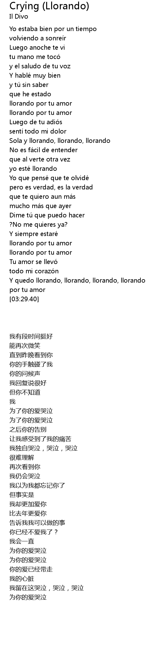 | [02:46.87] | Y quedo llorando, llorando, llorando, llorando |