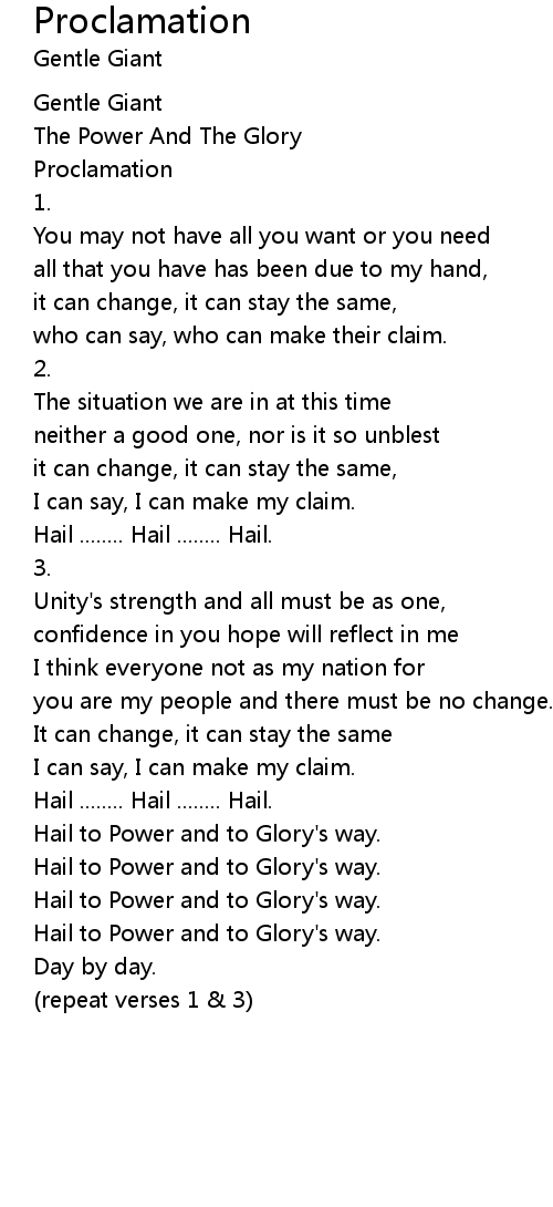 Hail to Power and to Glory's way. |