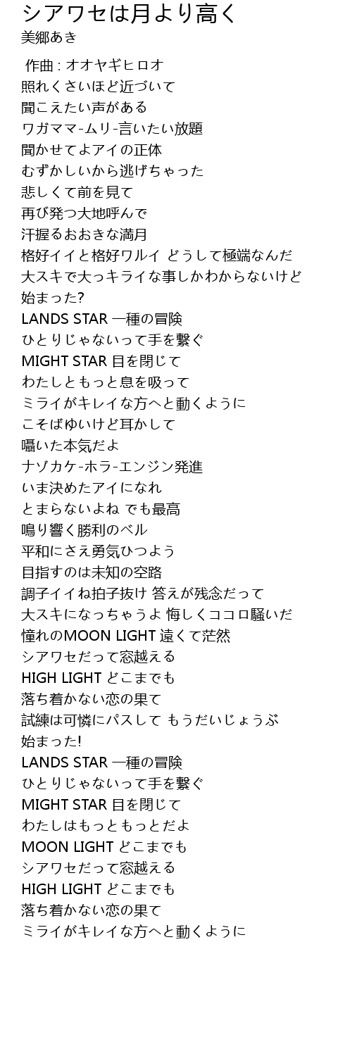 | Song | シアワセは月より高く |