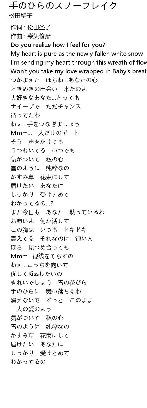 | [00:00.000] | 作词 : 松田圣子 |