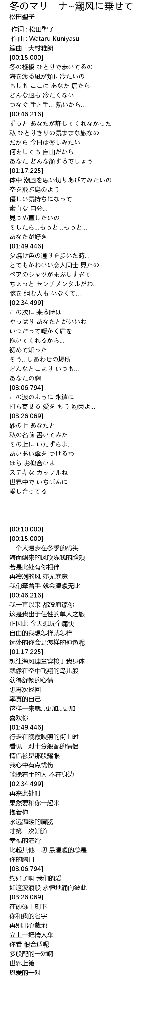 | [00:00.000] | 作词 : 松田聖子 |