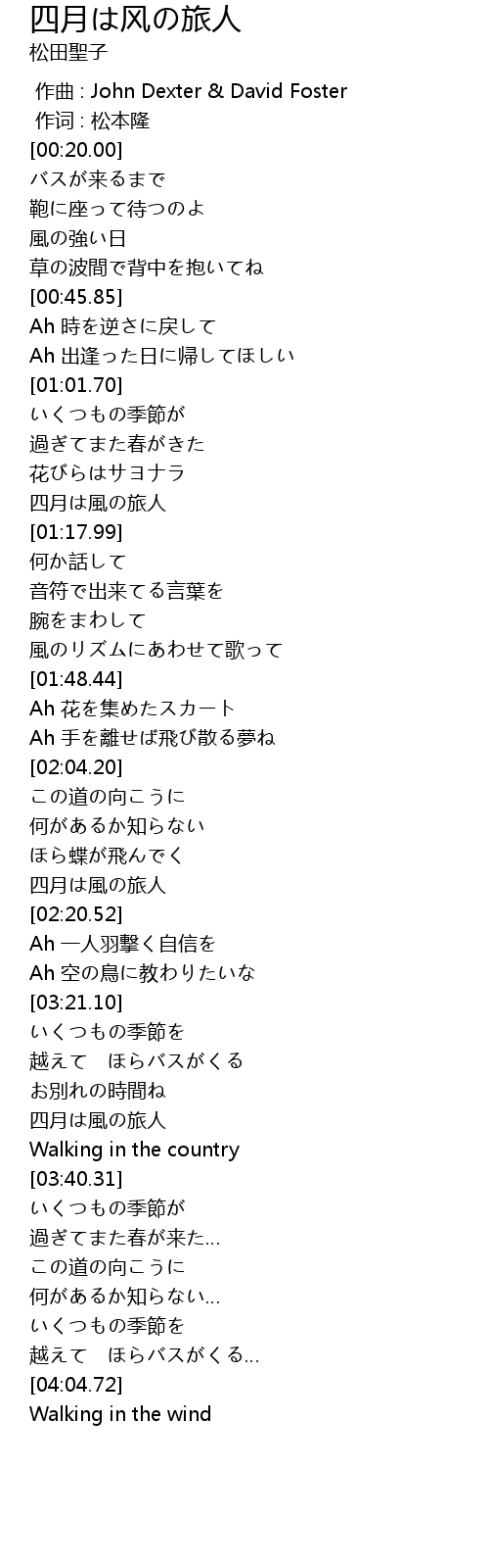 | [01:14.12] | 四月は風の旅人 |
