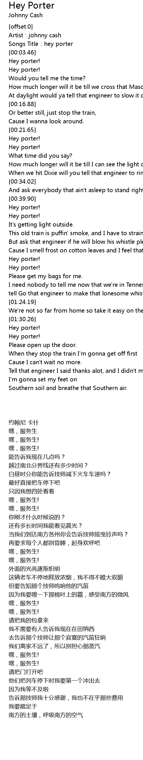 | [00:02.09] | Songs Title: hey porter |
