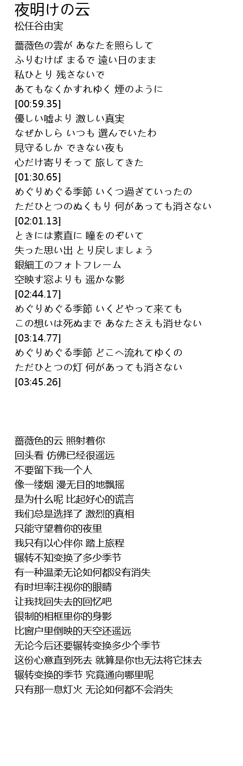 | [03:15.44] | めぐりめぐる季節 どこへ流れてゆくの |