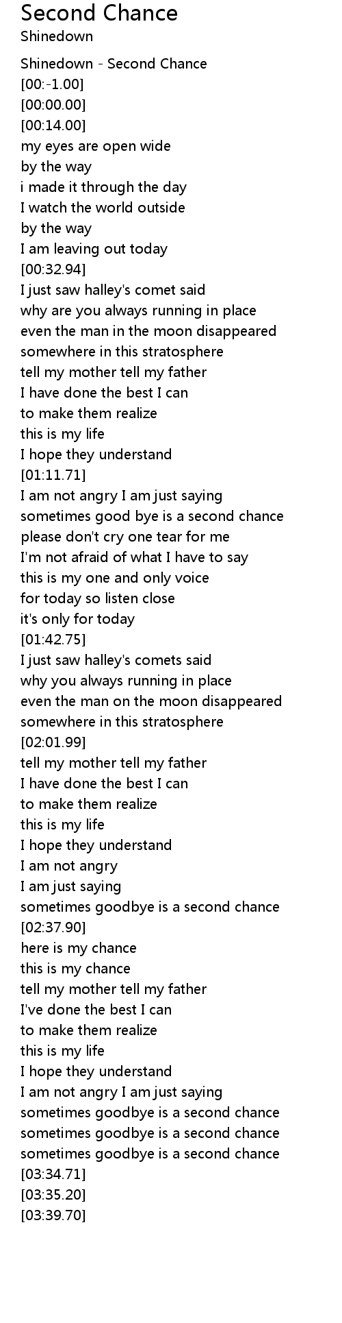 Second Chance Lyrics