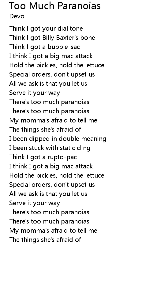 Too Much Paranoias Lyrics