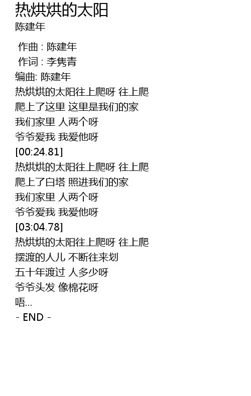 | [03:06.59] | 热烘烘的太阳往上爬呀 往上爬 |
