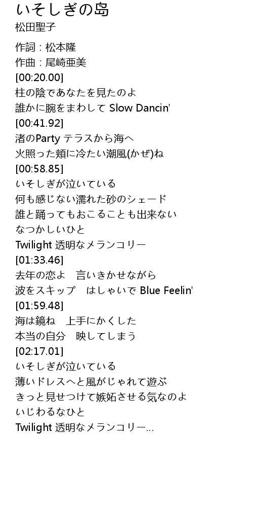 | [00:00.00] | 作詞:松本隆 |