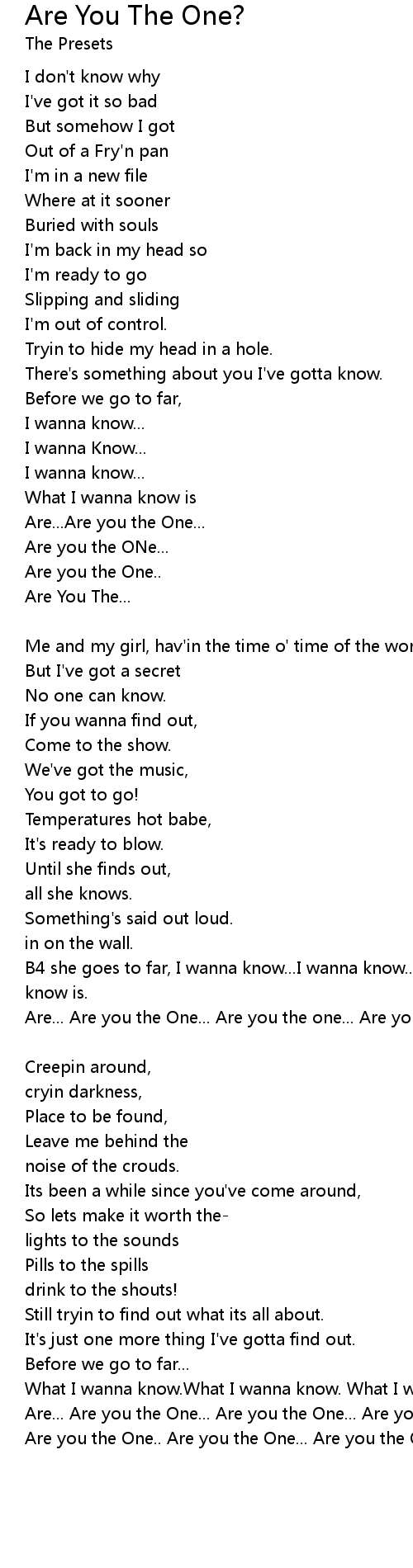 Are... Are you the One... Are you the one... Are you the One... Are you the... |