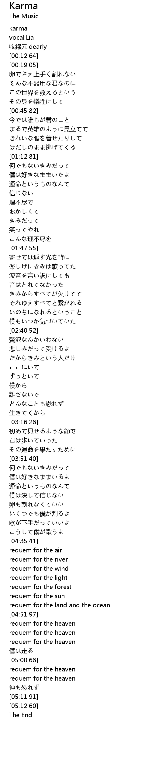 | [05:00.85] | requem for the heaven |
