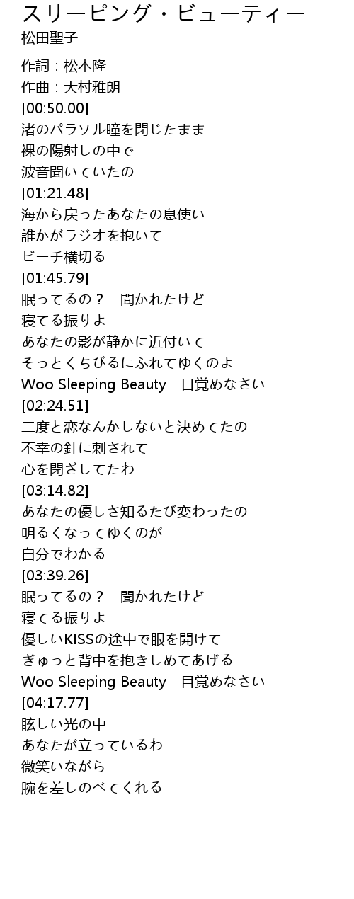 | [02:16.93] | Woo Sleeping Beauty 目覚めなさい |