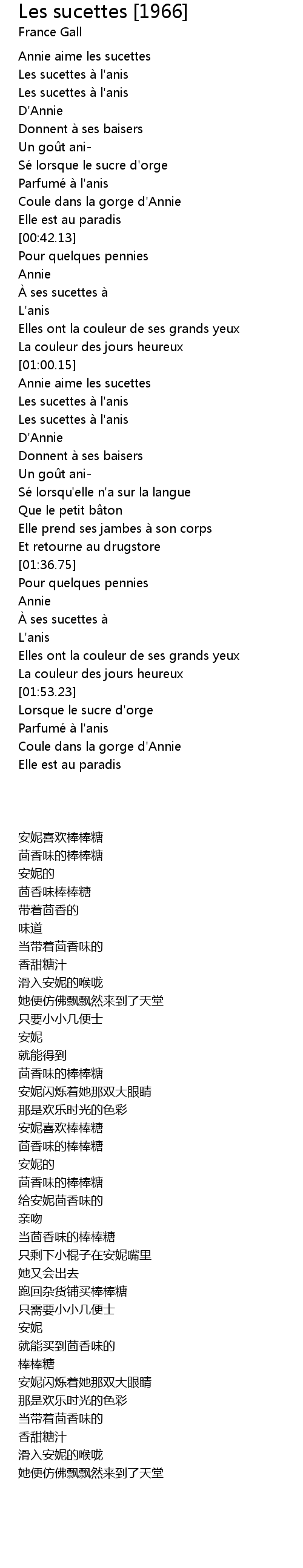 | [02:22.72] | Coule dans la gorge d' Annie |