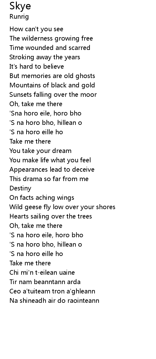 'S na horo bho, hillean o |