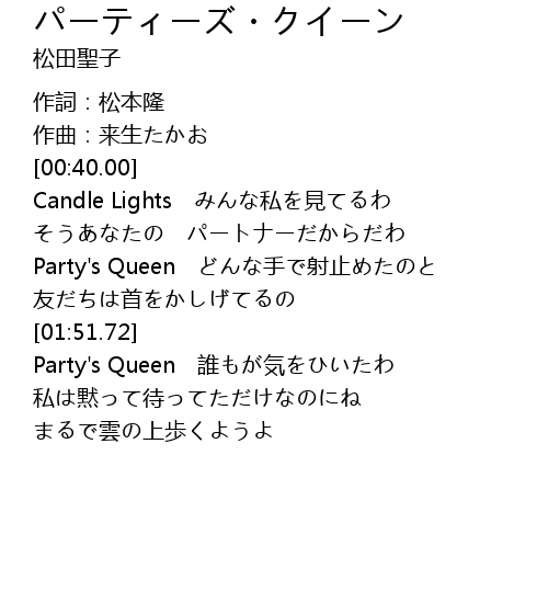 | [00:45.75] | Candle Lights みんな私を見てるわ |