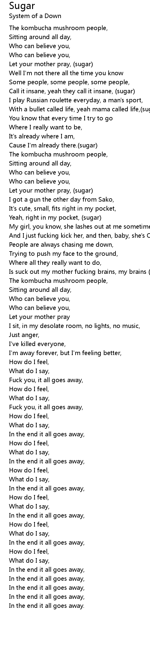 And I just fucking kick her, and then, baby, she's O.K.(sugar) |