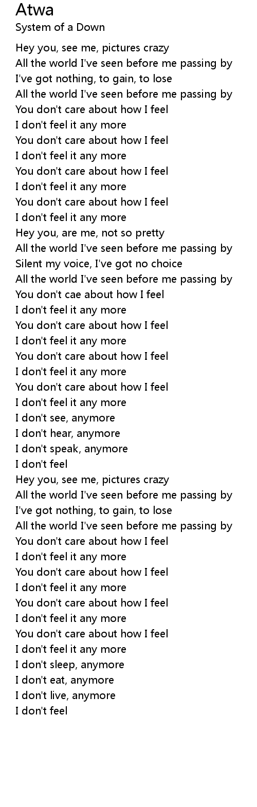 You don't cae about how I feel |