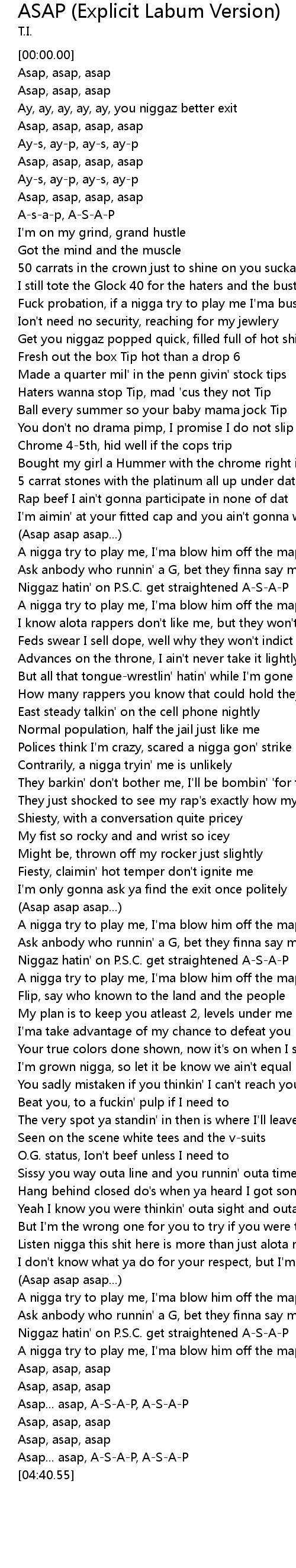 | [04:33.97] | Asap... asap, A-S-A-P, A-S-A-P |