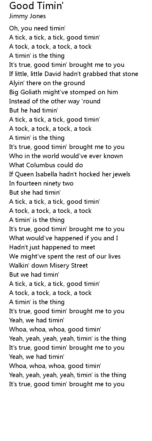 Yeah, yeah, yeah, yeah, timin' is the thing |