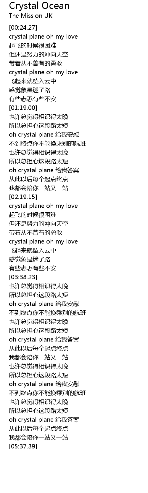 | [04:51.89] | oh crystal plane 给我安慰 |