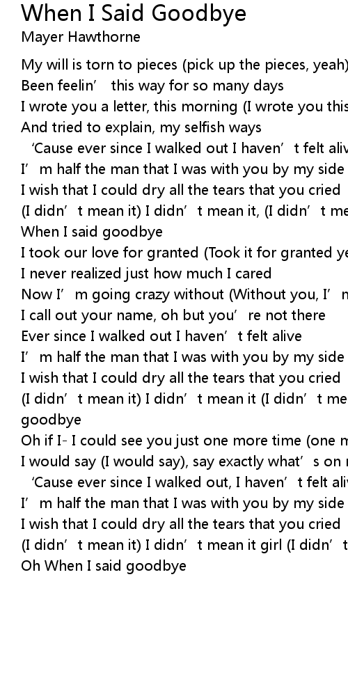 | I didn' t mean it I didn' t mean it I didn' t mean it oh When I said goodbye | |