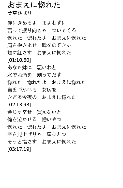 | [00:42.08] | 惚れた 惚れたよ おまえに惚れた |