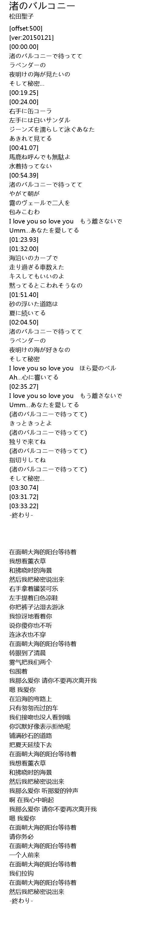 | [00:02.42] | 渚のバルコニーで待ってて |
