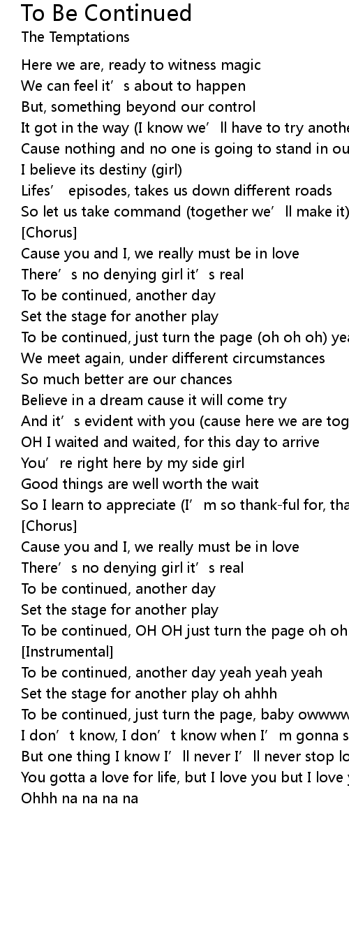 | To be continued, just turn the page (oh oh oh) yeah yeah | |