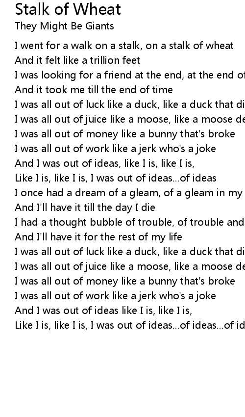 I went for a walk on a stalk, on a stalk of wheat |