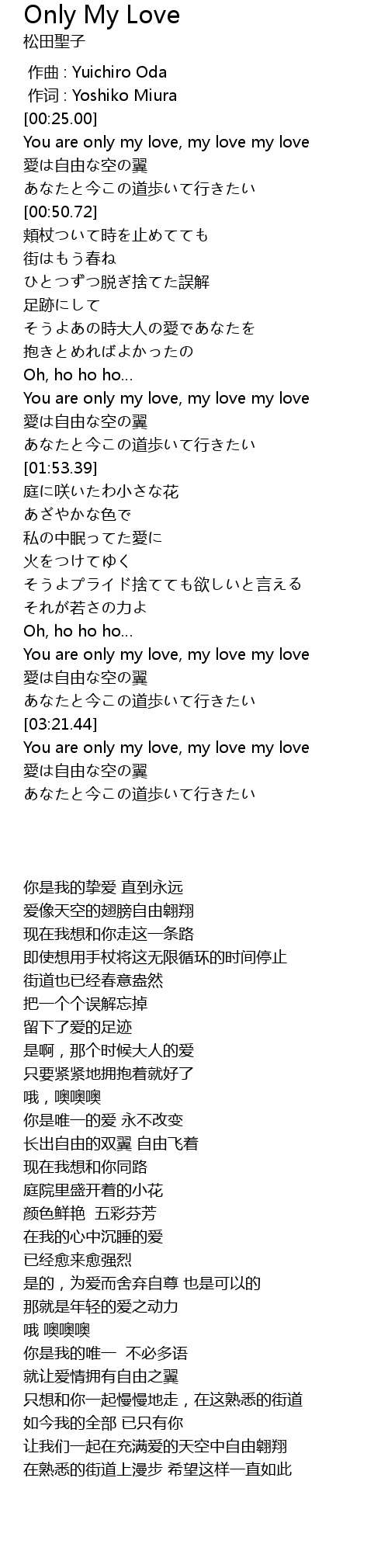 | [03:00.92] | You are only my love, my love my love |