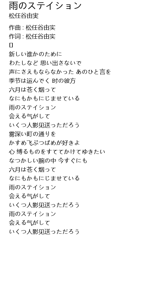 | Song | 雨のステイション |