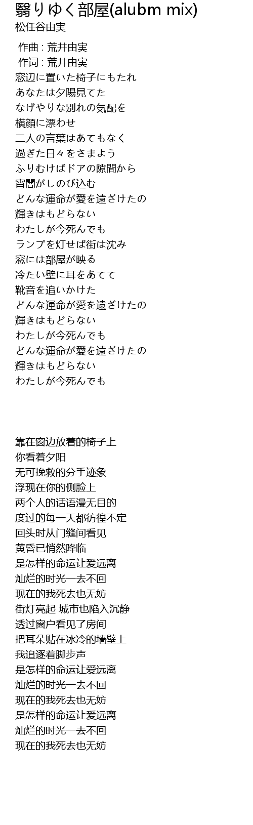 | Song | 翳りゆく部屋(alubm mix) |