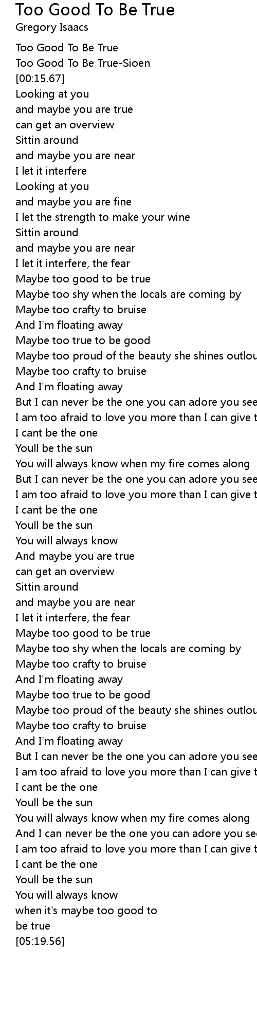 Too Good To Be True-Sioen |