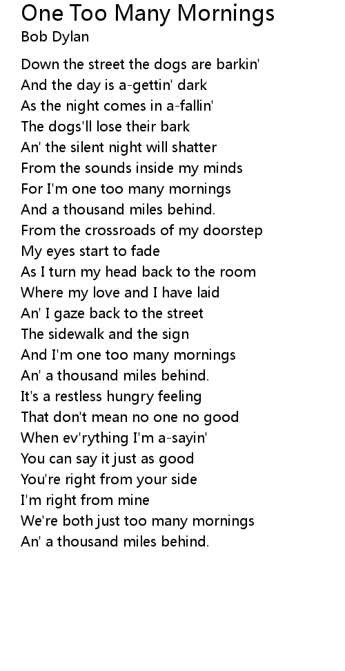 For I'm one too many mornings |