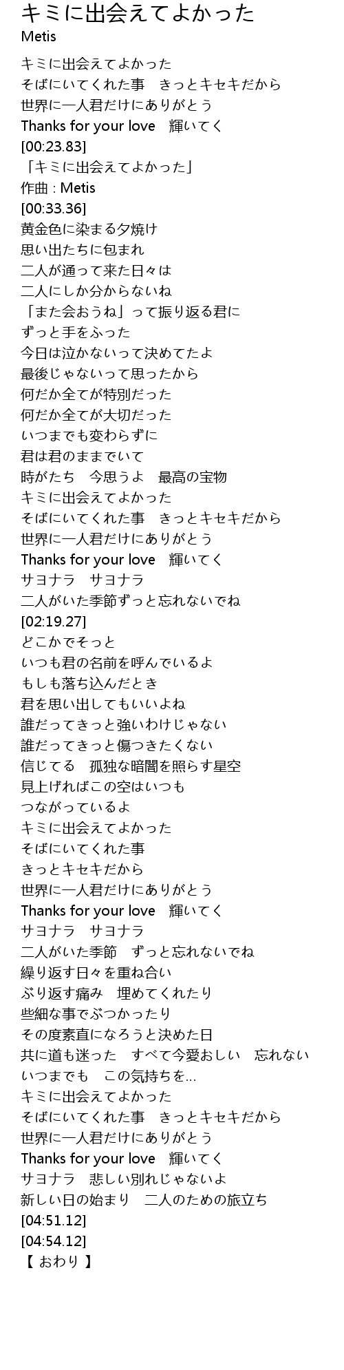 | [04:08.15] | キミに出会えてよかった |