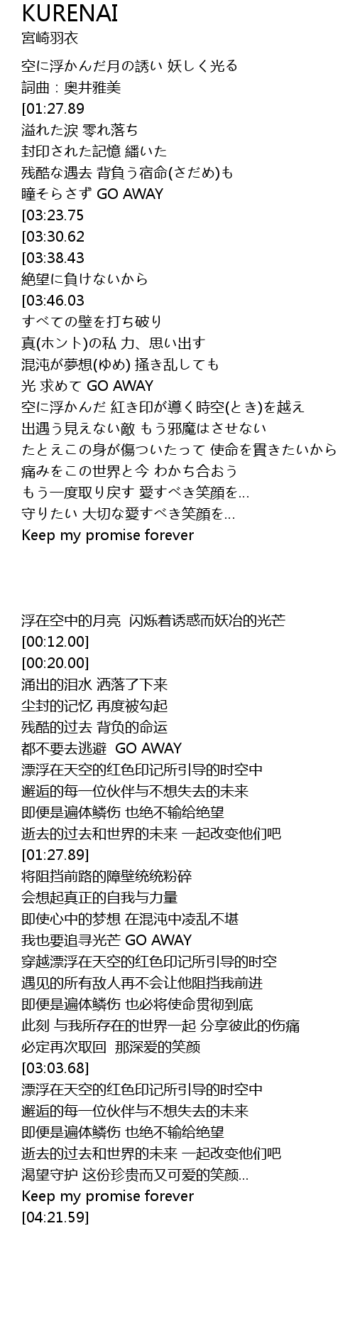 | [00:44.32] | 瞳そらさず GO AWAY |