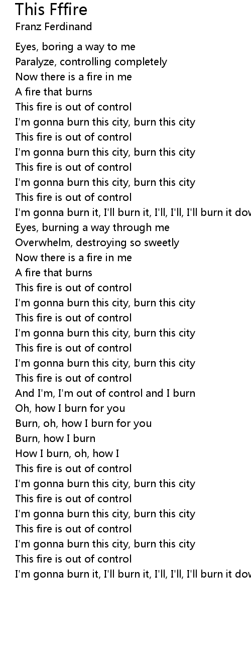 And I'm, I'm out of control and I burn |