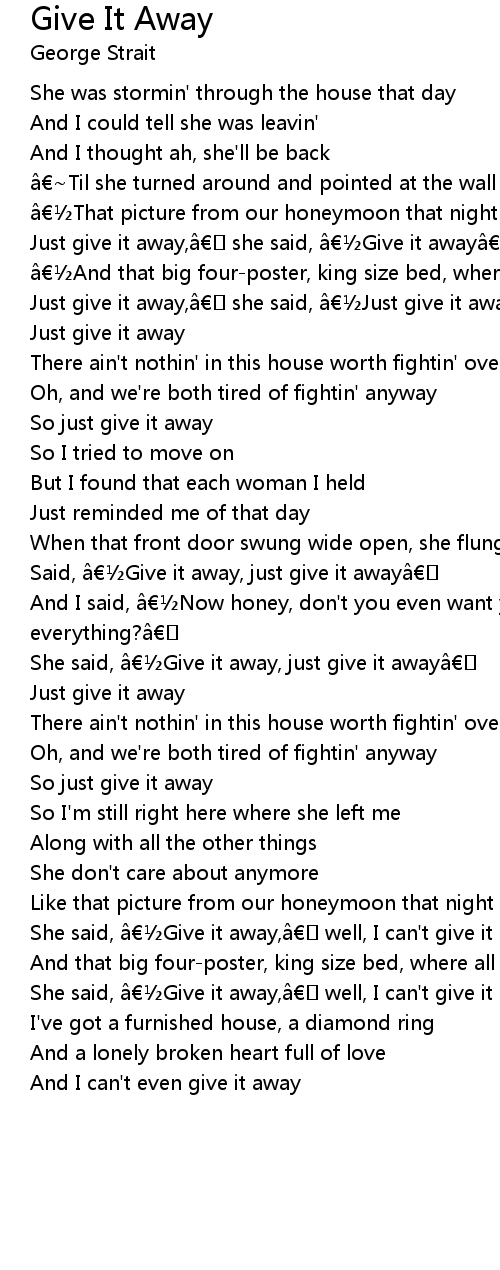 | Just give it away,†she said, ‽Give it away†| |